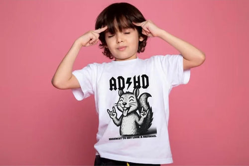 Funny “ADHD – Hey Look a Squirrel” Kids T-Shirt | Cute Cartoon Squirrel Graphic Tee