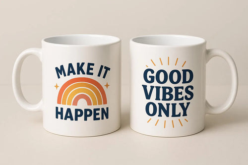 Make it happen Coffee Mug set of two- Inspirational, Motivational Gift, Home Office Decor, Black Accent, 12oz